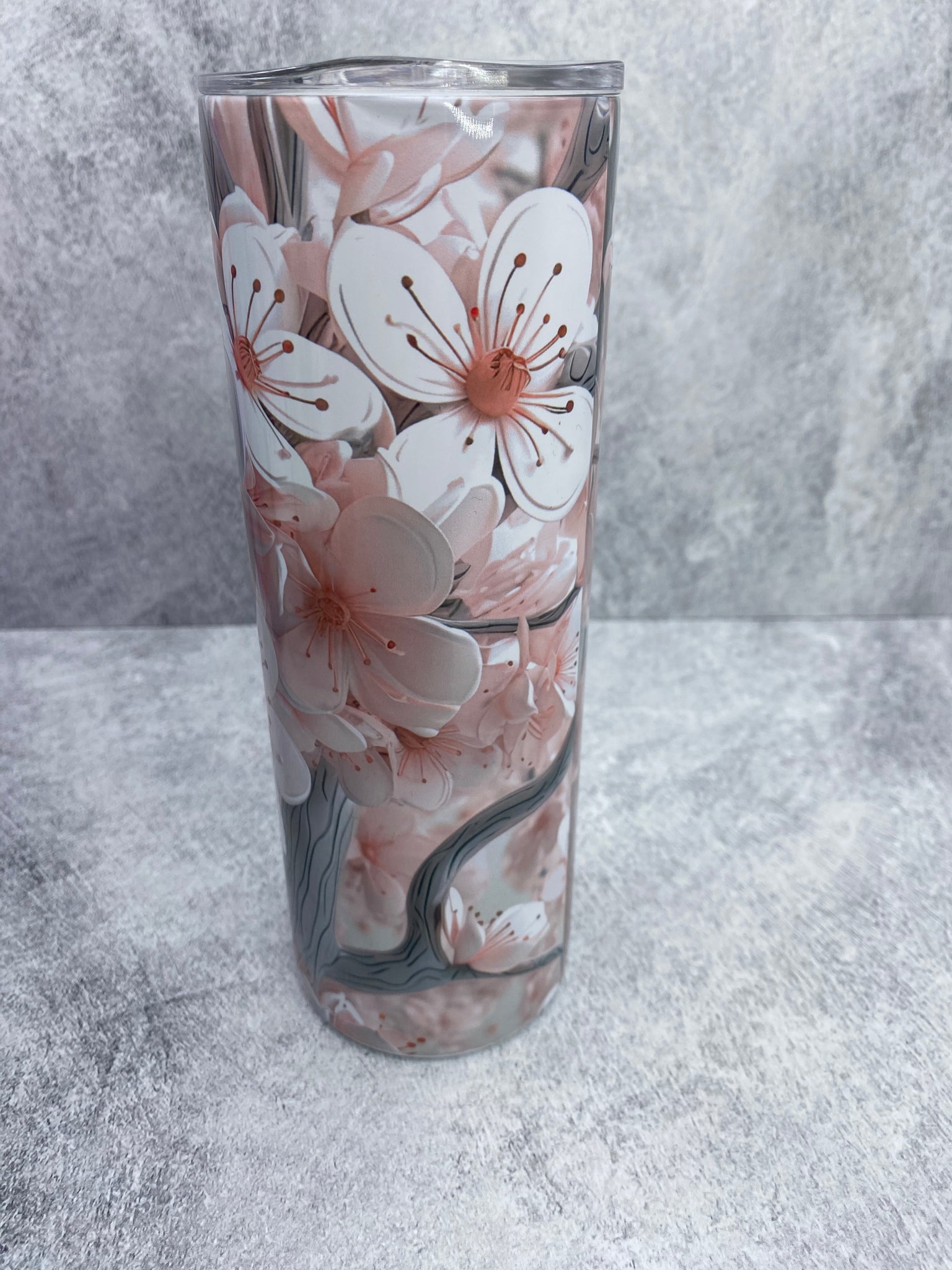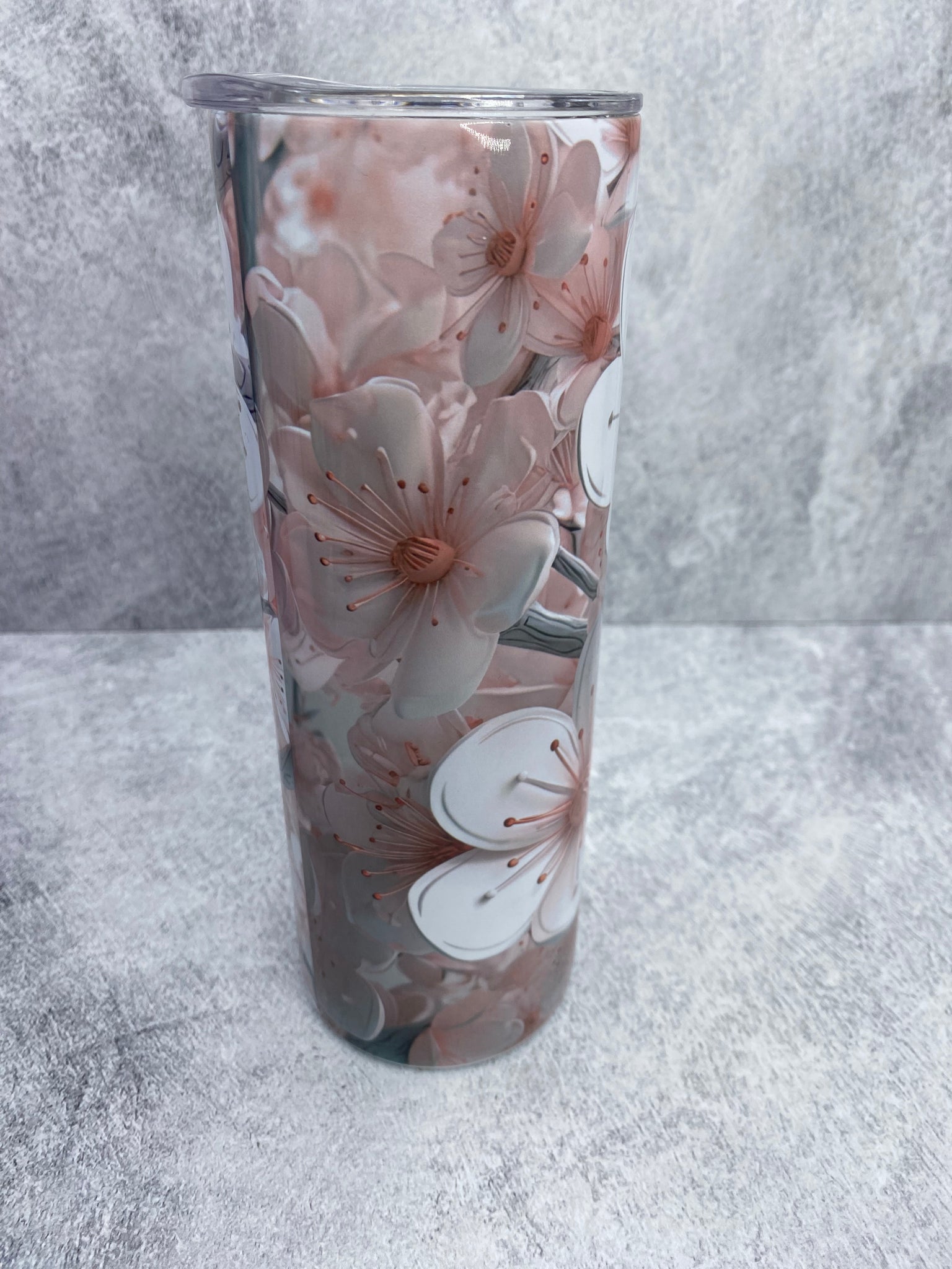 3D Pink Flowers - 20 oz Stainless Steel Skinny Tumbler with lid and straw.