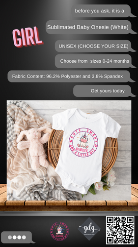 Cute Smart and a Little Bit Dramatic (Girl) Sublimated Baby Onesie (Bodysuit) - UNISEX (CHOOSE YOUR SIZE) WHITE ONLY