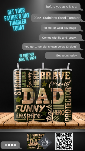 Brave, strong, funny, Hero...Dad - 20 oz Stainless Steel Skinny Tumbler with lid and straw.