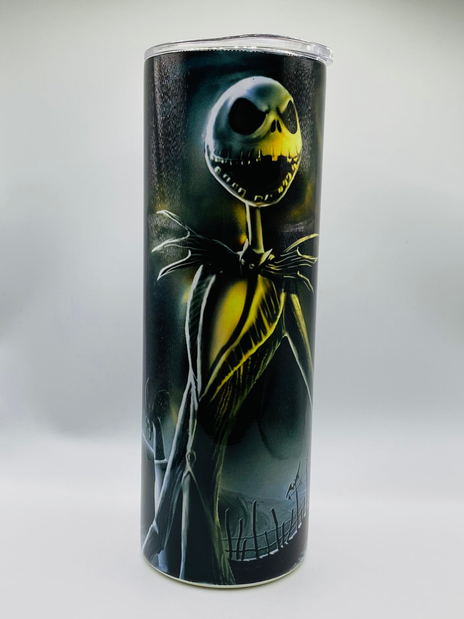 Jack Skellington The Nightmare Before Christma20 oz  Stainless Steel Skinny Tumbler with lid and straw.