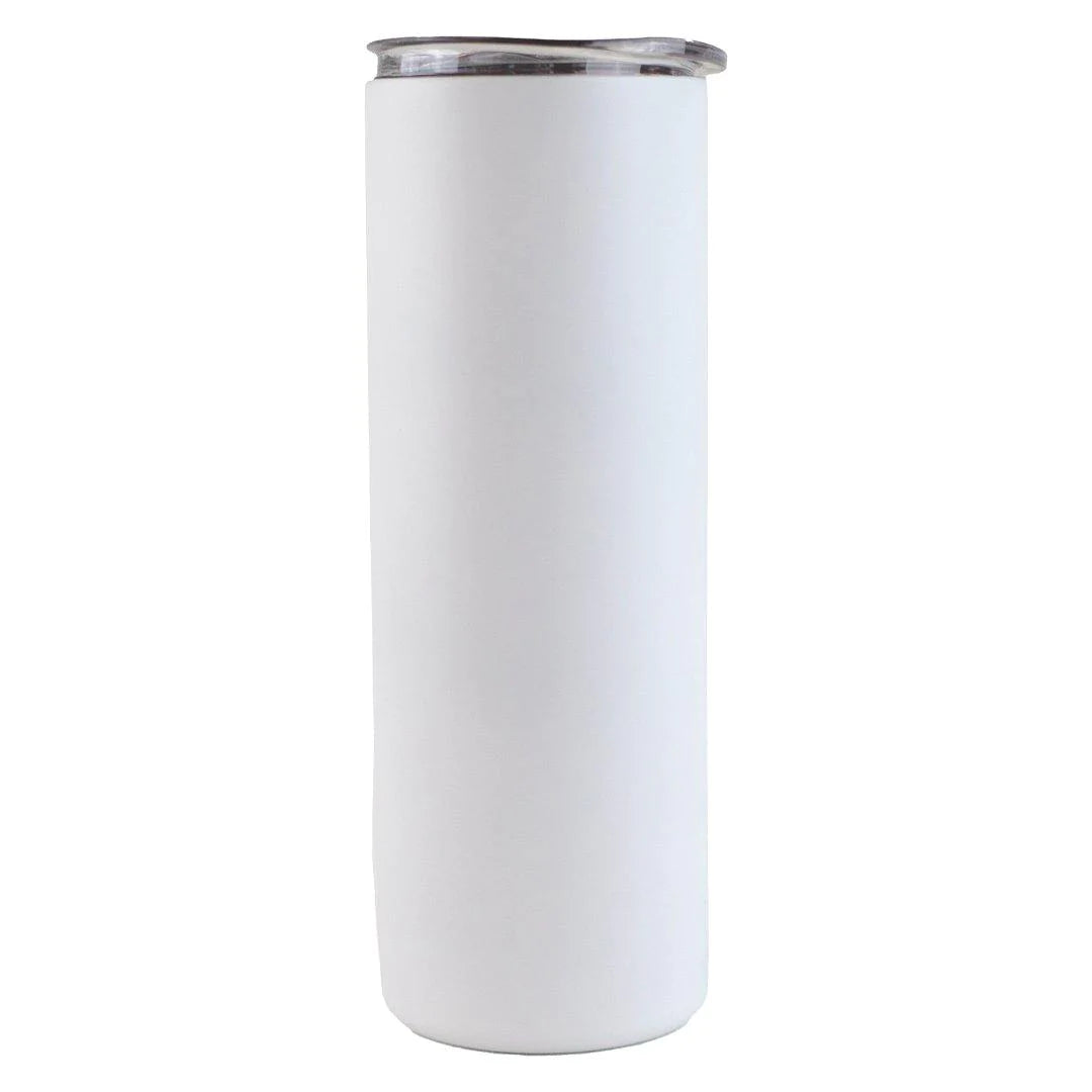 BLUE GLOW IN THE DARK 20 oz BLANK SUBLIMATION SKINNY STAINLESS STEEL TUMBLER WITH LID AND PLASTIC STRAW.