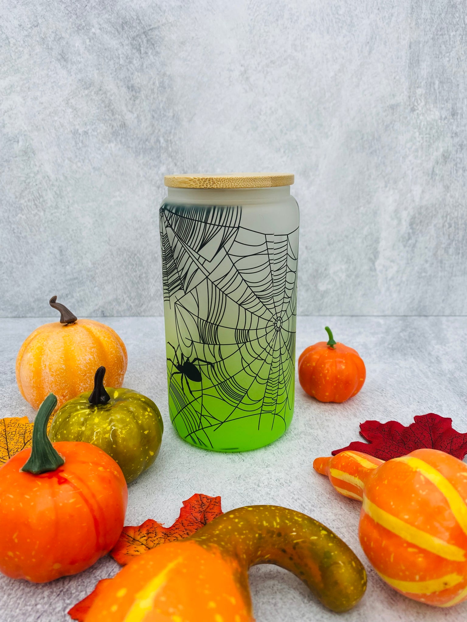 Halloween  - Witch’s Brew Green 16 oz Beer Can Glass with Bamboo Lid and Straw