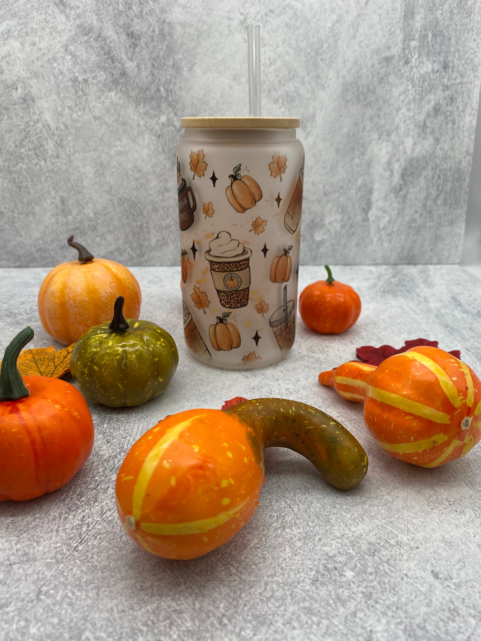 Halloween or Fall - Pumpkin Spice Vibes 16 oz Beer Can Glass with Bamboo Lid and Straw