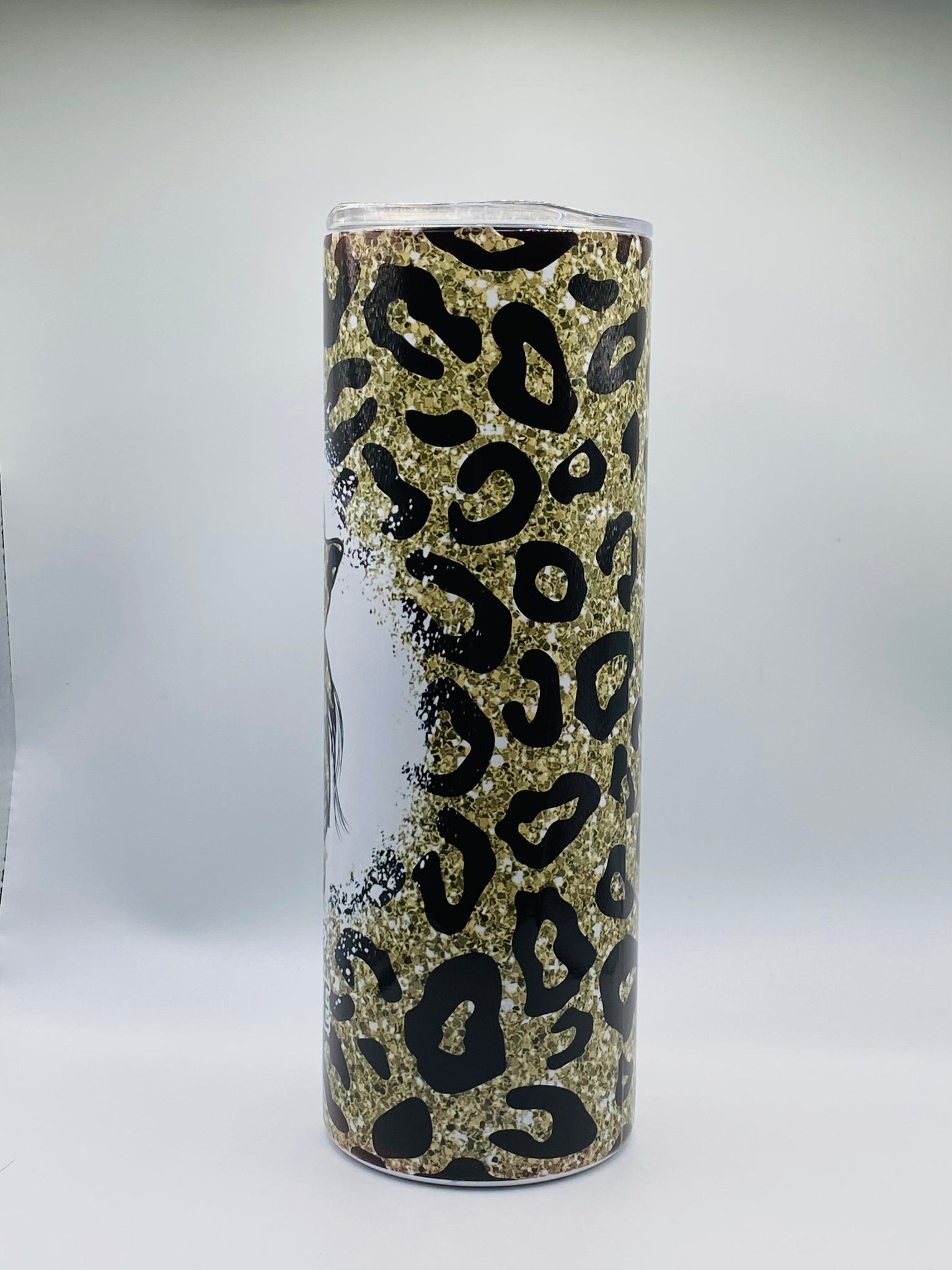 Mom Life 20 oz Stainless Steel Skinny Tumbler with lid and straw.