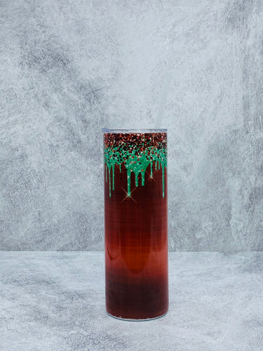 Red with Green Glitter Drip - 20 oz Stainless Steel Skinny Tumbler with lid and straw.