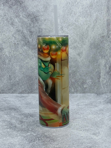 Grinch Christmas - 20 oz Stainless Steel Skinny Tumbler with lid and straw.