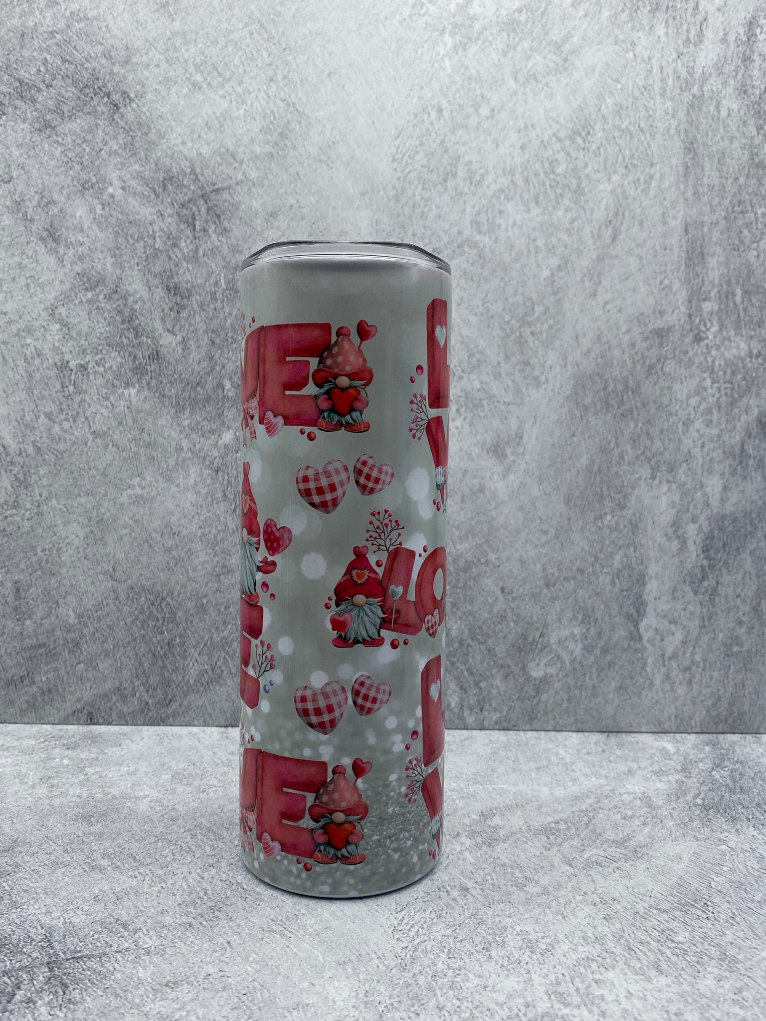 Gnome Valentine (Love Gnome) - 20 oz. Stainless Steel Skinny Tumbler with lid and straw.