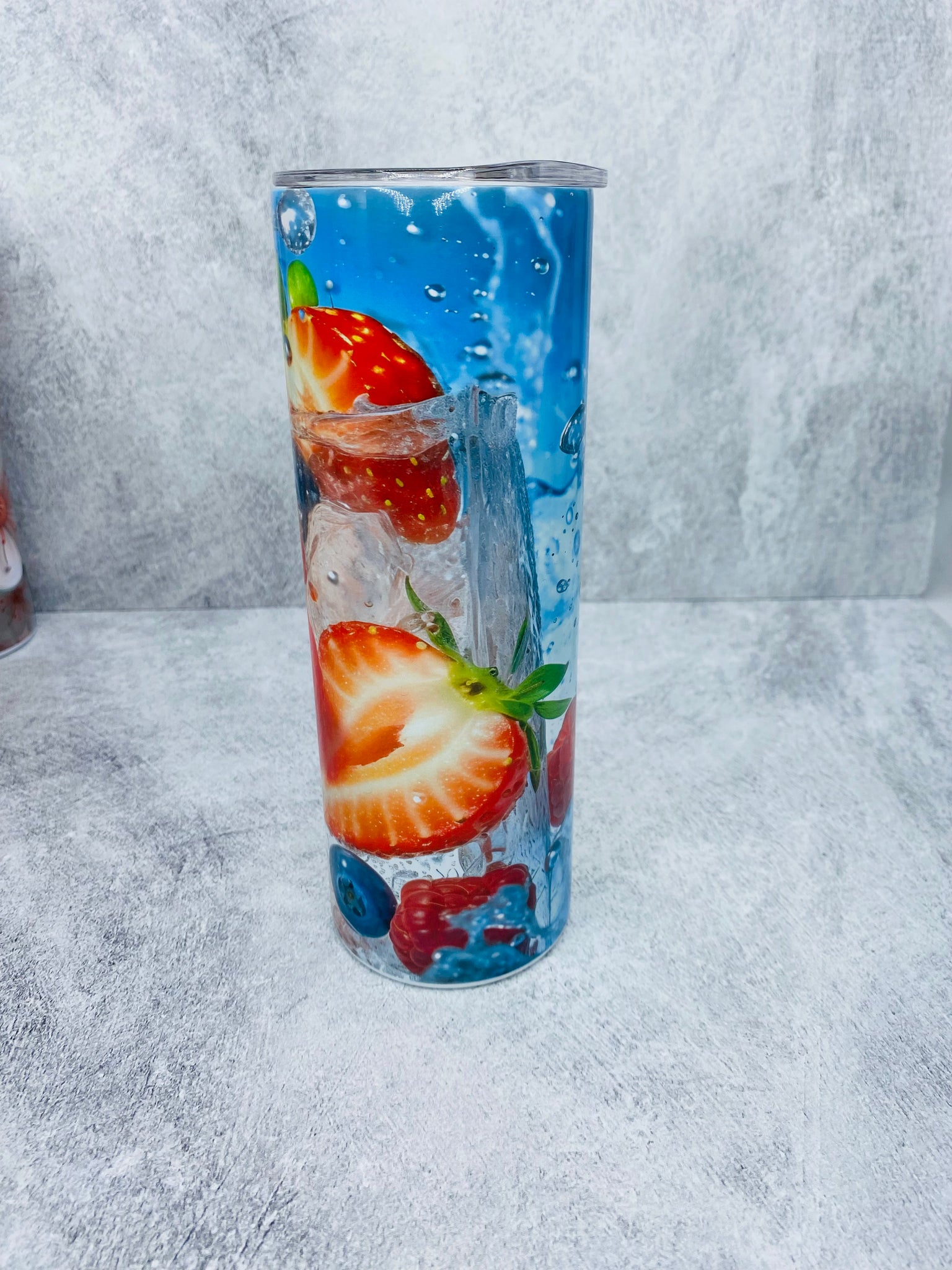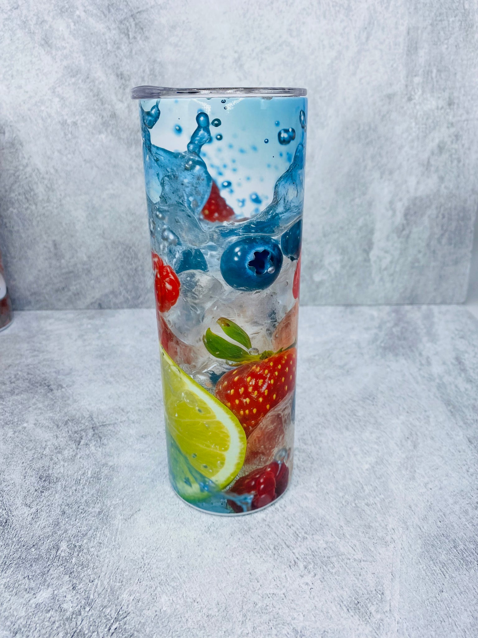 3D Fresh Fruit  20 oz  Stainless Steel Skinny Tumbler with lid and straw.